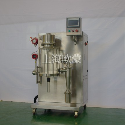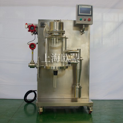 小型噴霧干燥機(jī)主要在科研階段對(duì)溶液或流體樣品進(jìn)行噴霧干燥成粉或微小顆粒。其原理是通過霧化器將樣品霧化成微細(xì)霧滴,進(jìn)入干燥室內(nèi)進(jìn)行熱交換,水份瞬間蒸發(fā),固體經(jīng)過旋風(fēng)分離器進(jìn)行回收,飽和氣體經(jīng)過除塵器過濾后排空,本設(shè)備可應(yīng)用于從試驗(yàn)室到一般研究室的噴霧干燥作業(yè),在食品醫(yī)藥化工行業(yè)均可良好的應(yīng)用。