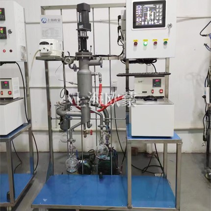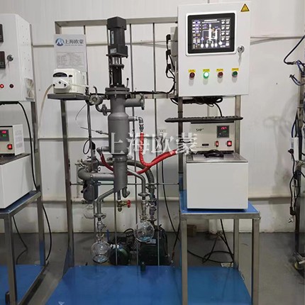 由采用垂直刮板成膜設計,物料在加熱壁上的停留時間短,對其他蒸餾而言,受熱時間一般較長(30分鐘以上甚至幾十個小時),而短程蒸餾僅為十幾秒。由于短程蒸餾加熱壁與冷凝器間有嚴格的距離要求,由液面逸出的輕分子,幾乎瞬時就到達冷凝面,汽相輕分子受熱時間在這個過程中可以忽略不計。熱分解的可能被*小化。
